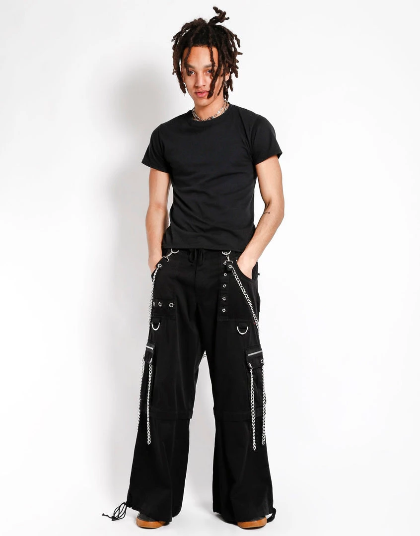 Accept no imitations! From the originator of all things DarkStreet, these black and red studded pants zip off into shorts and feature removable chains, adjustable ankles, D-rings, grommets, and deep pockets.