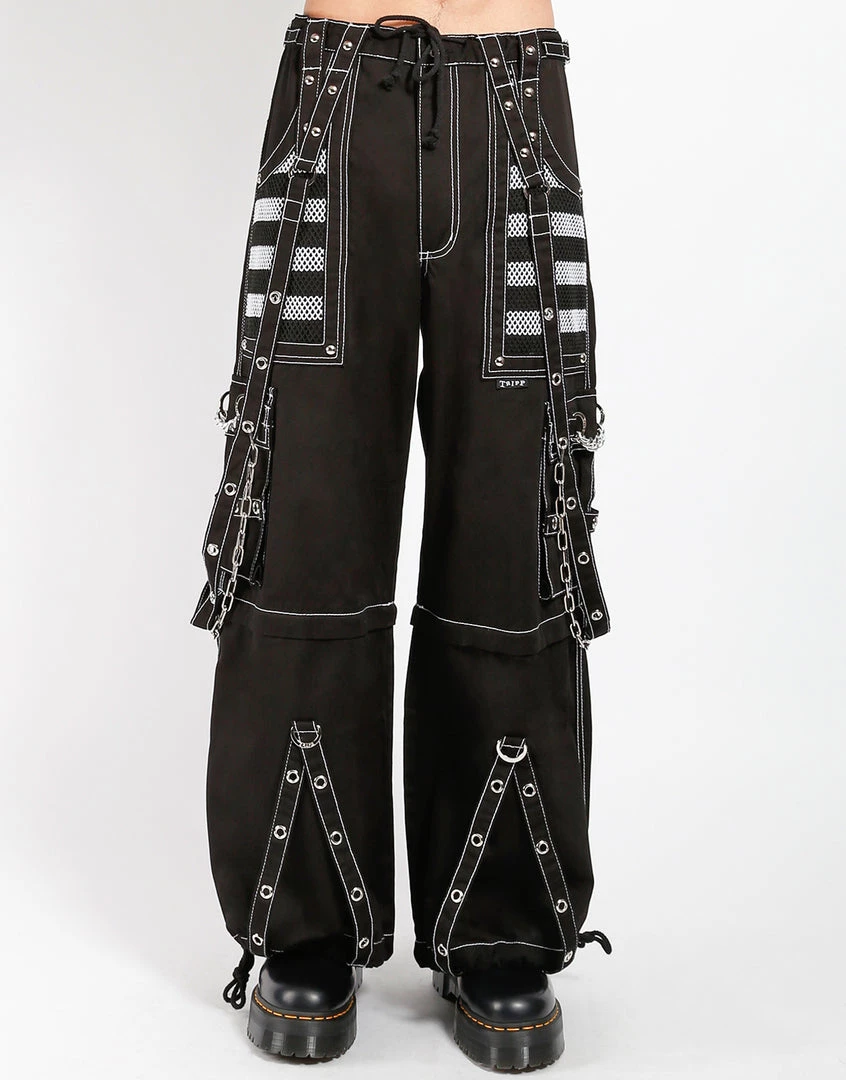 Accept no imitations! From the originator of all things DarkStreet, these Black and Red pants zip off into shorts and feature removable chains, adjustable ankles, D-rings, and deep, netted pockets.