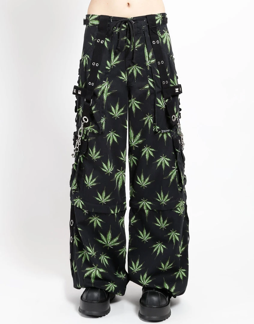 Accept no imitations! From the originator of all things DarkStreet, these grass print studded pants zip off into shorts and feature removable chains, adjustable ankles, D-rings, and deep pockets.