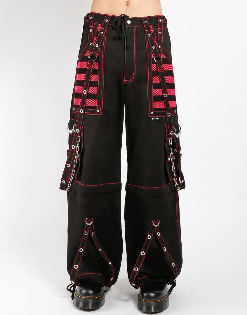 Accept no imitations! From the originator of all things DarkStreet, these Black and Pink pants zip off into shorts and feature removable chains, adjustable ankles, D-rings, and deep, netted pockets.