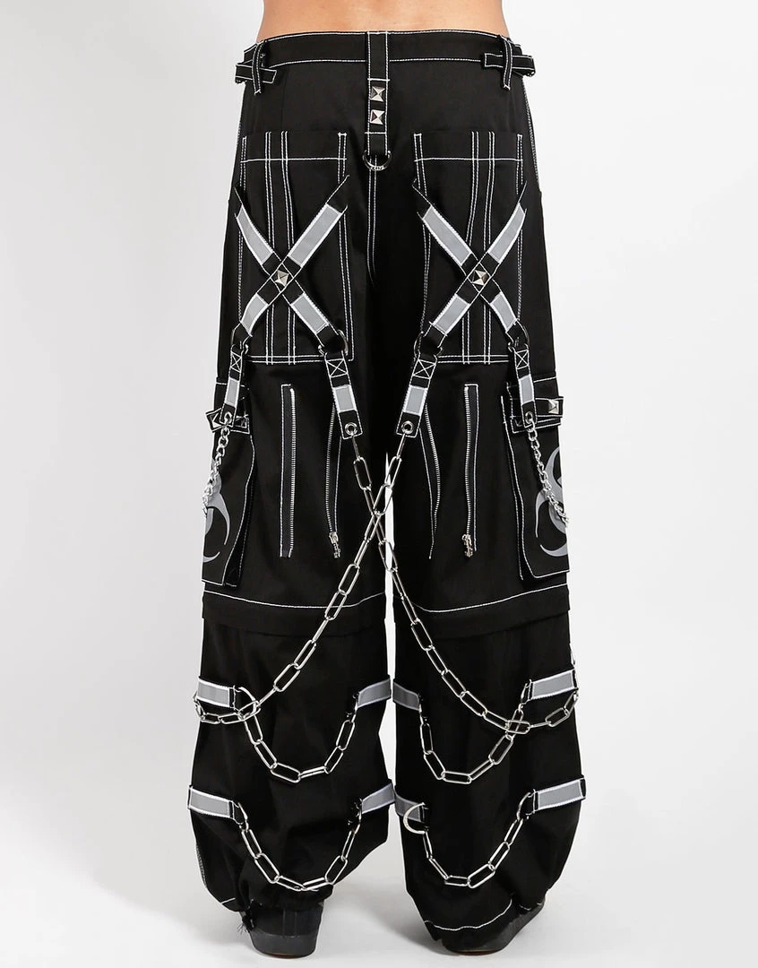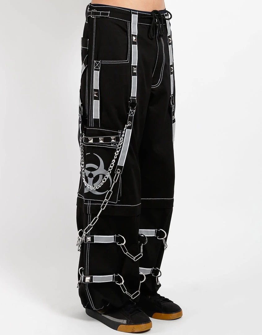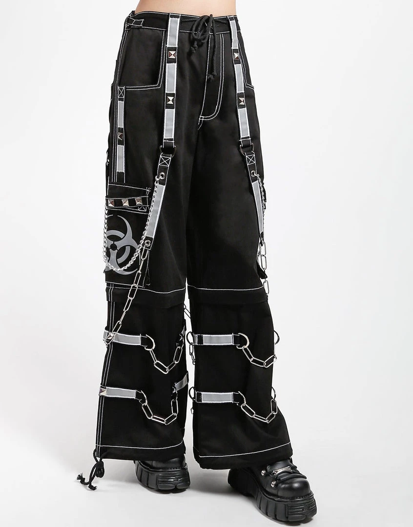Accept no imitations! From the originator of all things DarkStreet, these pants zip off into shorts and feature removable straps and chains, reflective BIOHAZARD print and details, contrast stitching, adjustable ankles, D-rings, and deep pockets.