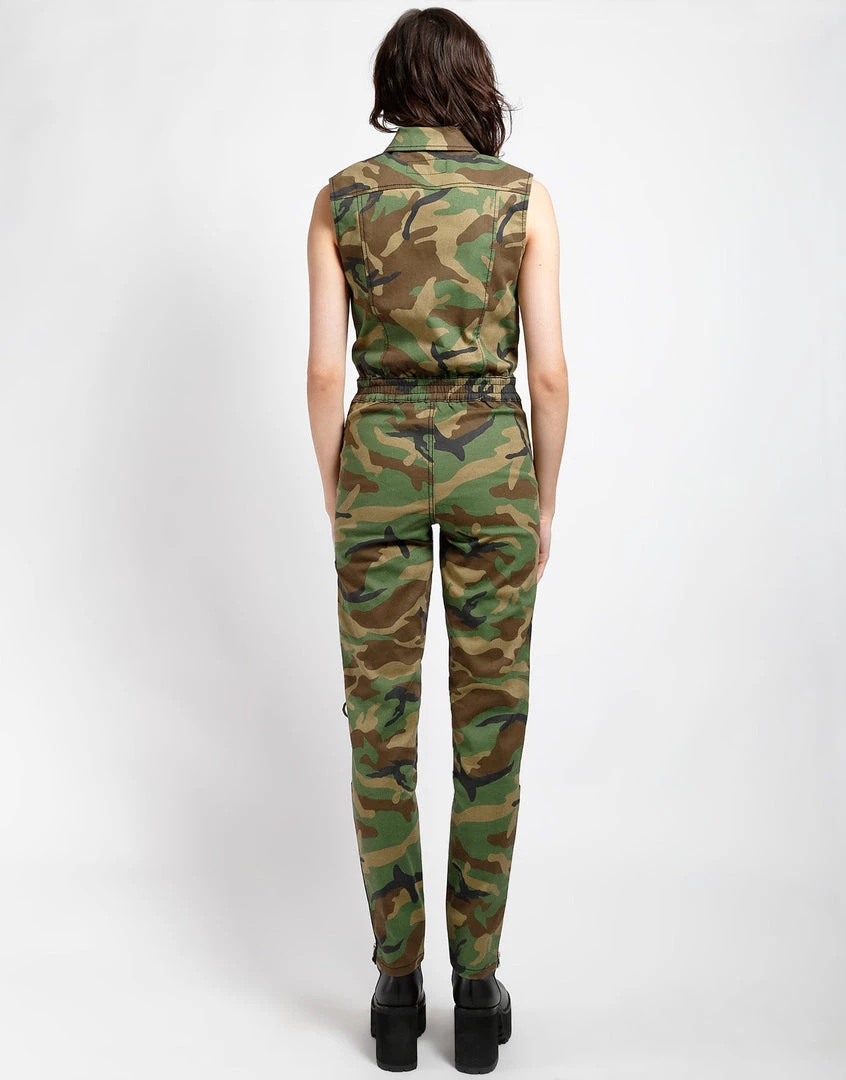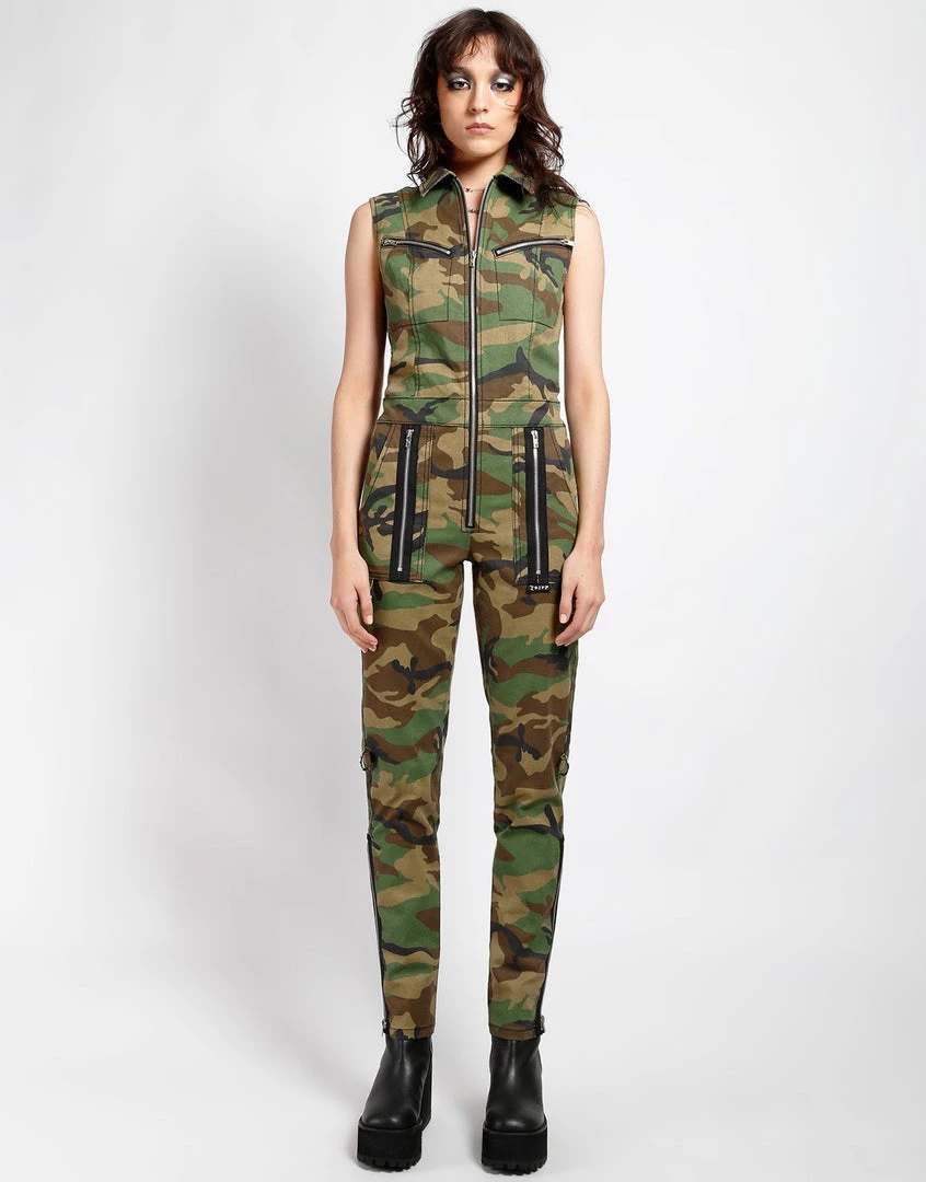 Fulfill your style potential with this slick utilitarian jumpsuit featuring a gunmetal zipper closure and details, a cinched waist, and deep pockets.