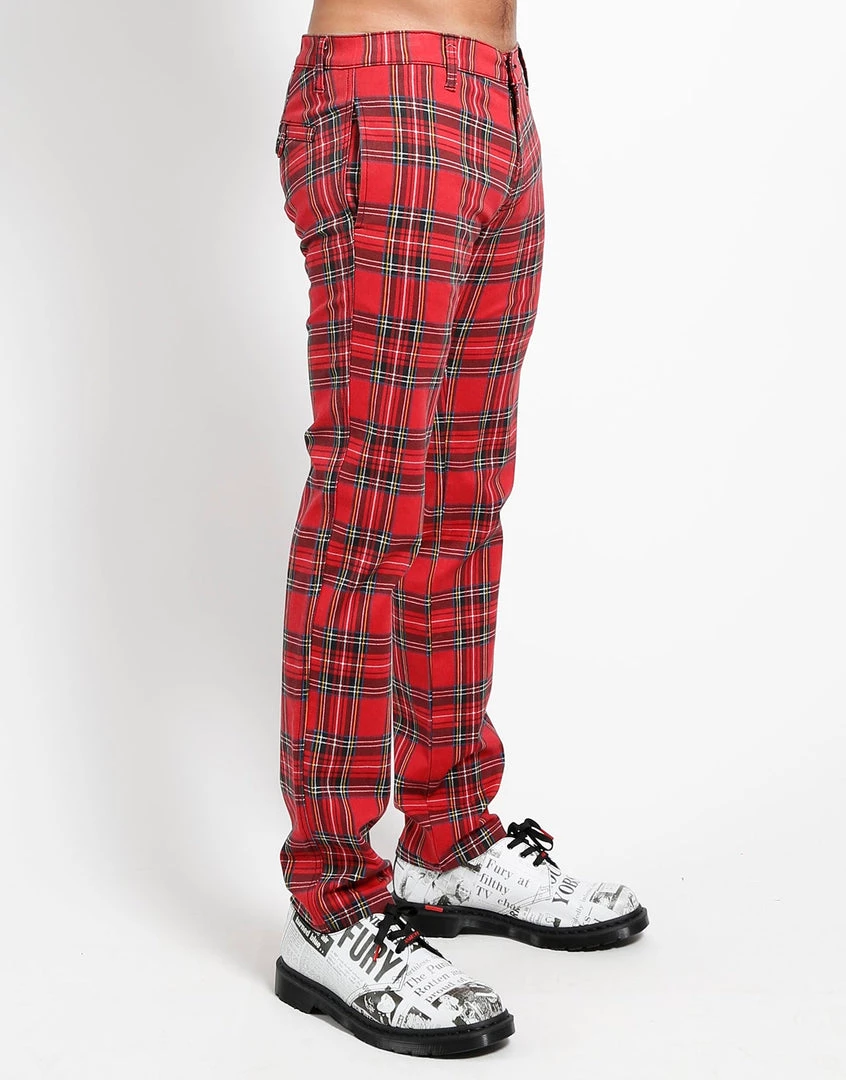 When this red plaid classic print collides with a traditional trouser, featuring four pockets and a zipper and button fly, you get a bold look. Pair it with the matching Top Cat Blazer for a really unique outfit.