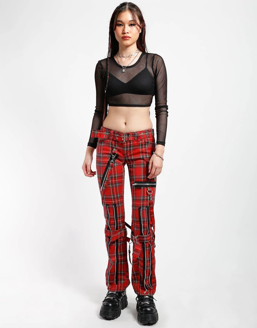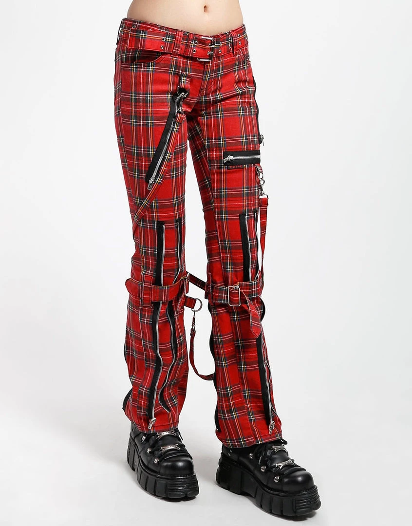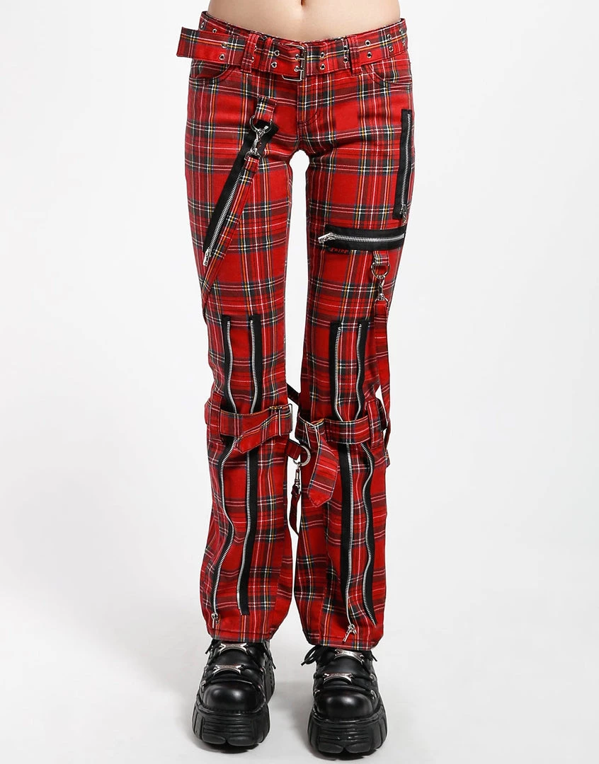 Judy is a punk and so are you! Our classic printed slim bondage pants have removable straps, all over zipper detail and grommet accented belt. Pant legs can be zipped for a change in fit, topped off with a zip fly and button closure.
