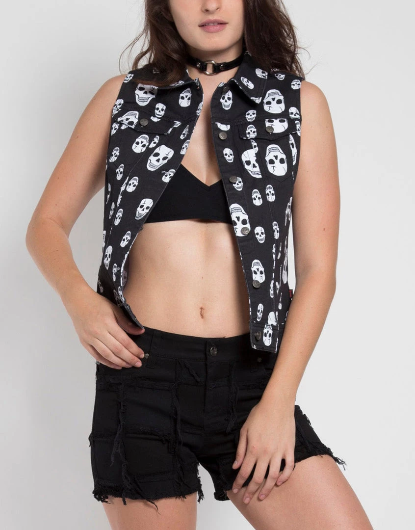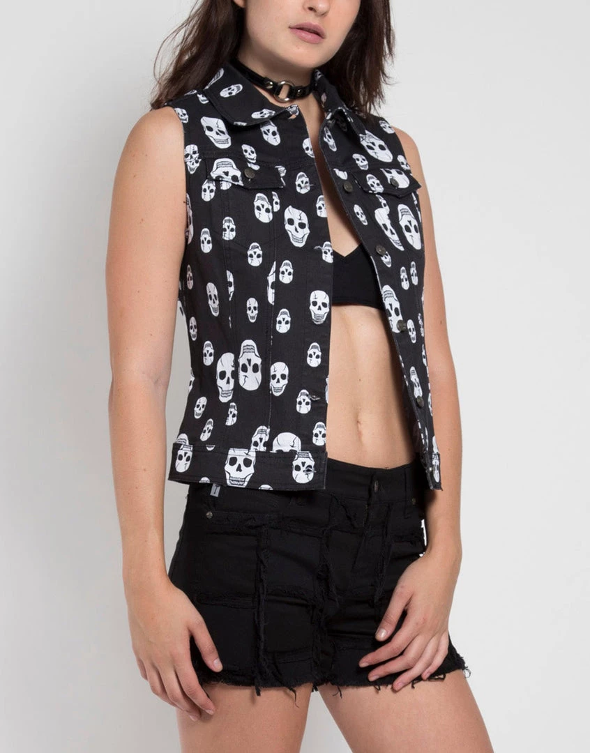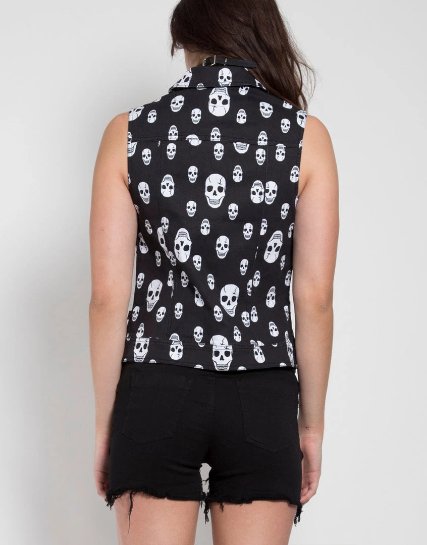 Skull printed button front vest.