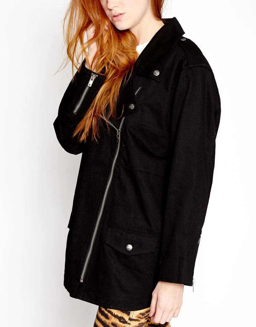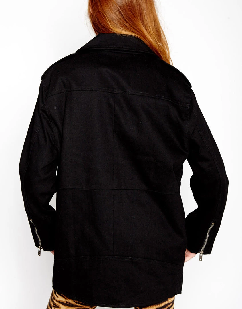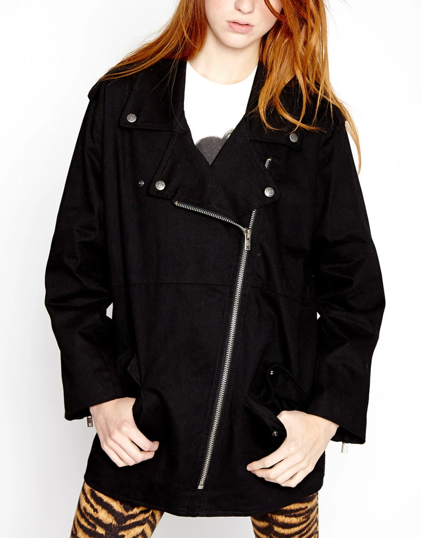 Roomy enough for two, this oversize jacket brings our classic moto to epic proportions. Super oversize fit with classic moto detailing (zip front & sleeves, snap lapels) and cozy snap close pockets at front.