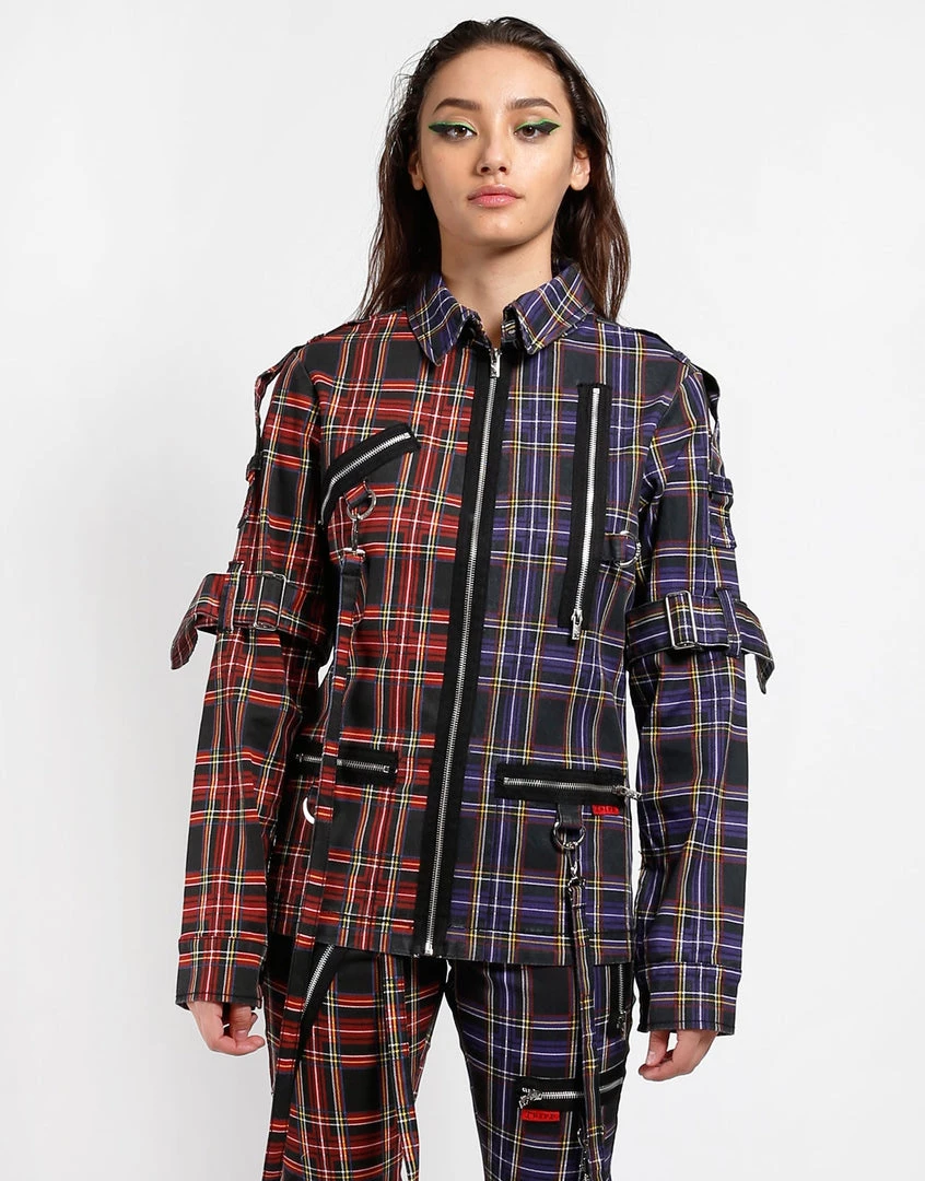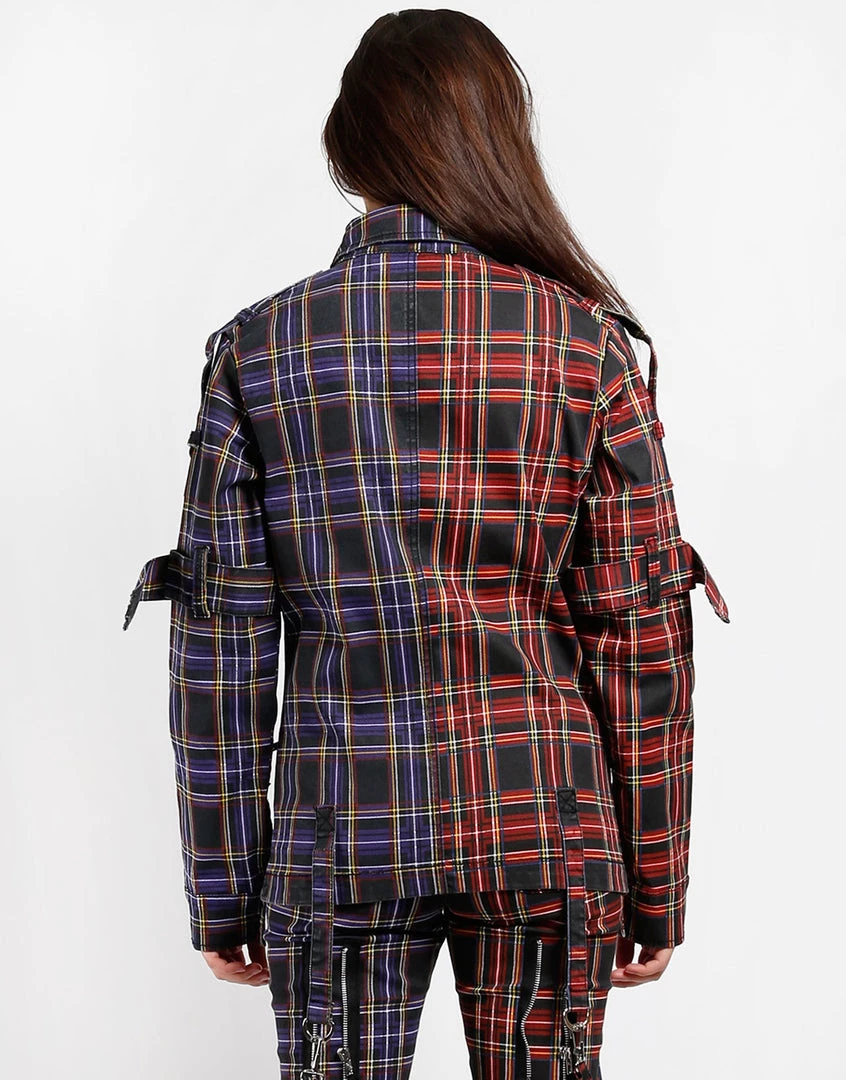 Black and Purple Plaid Split Punk Jacket