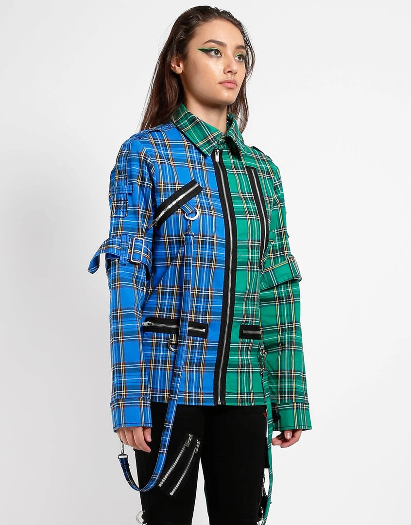 Blue and Green plaid split jacket
