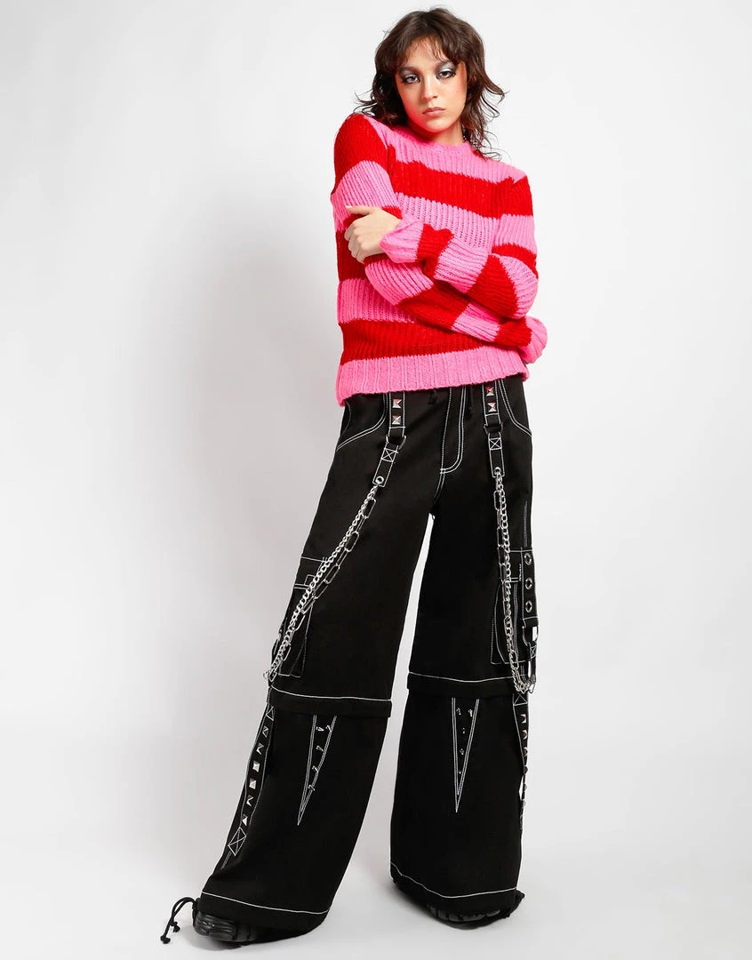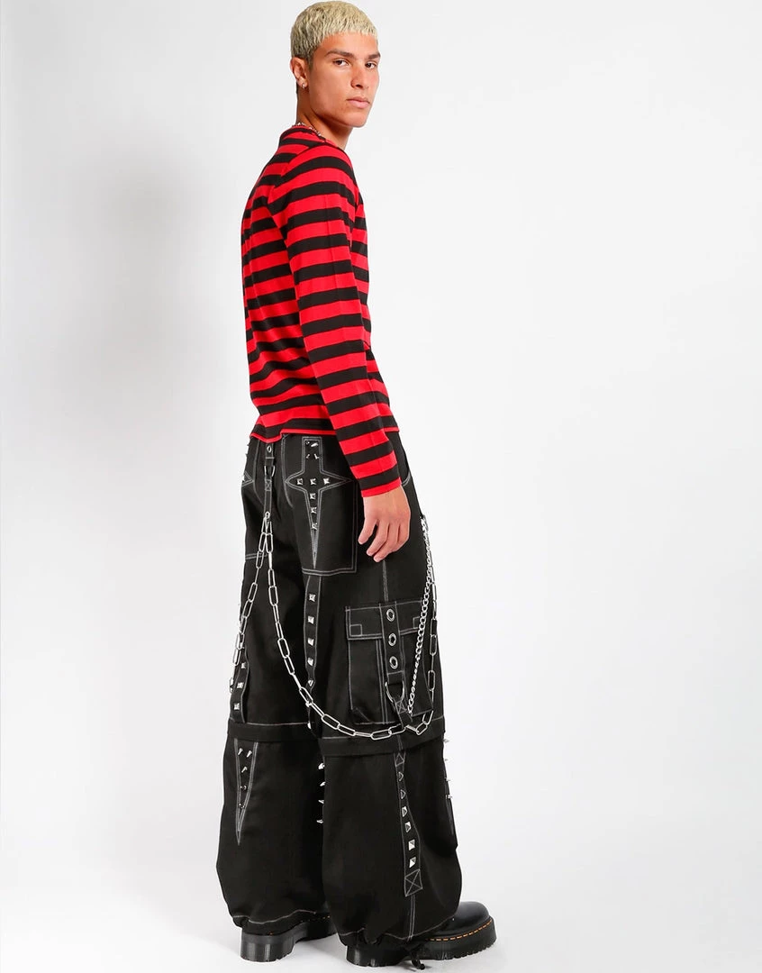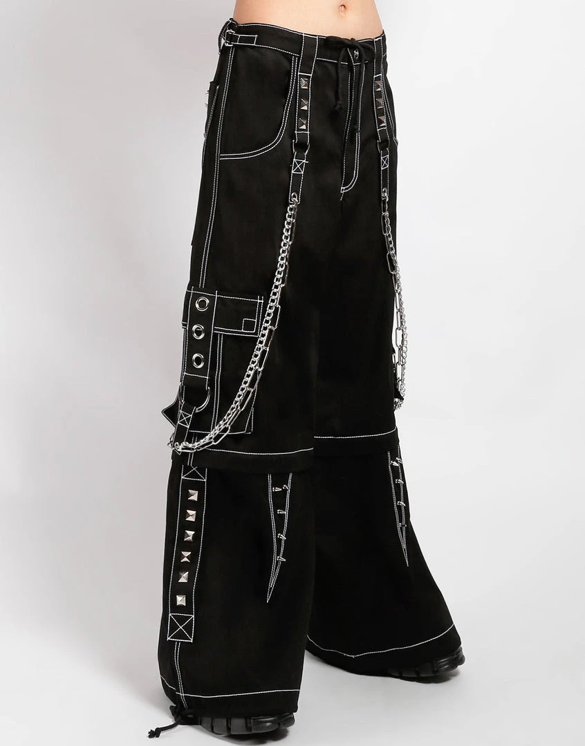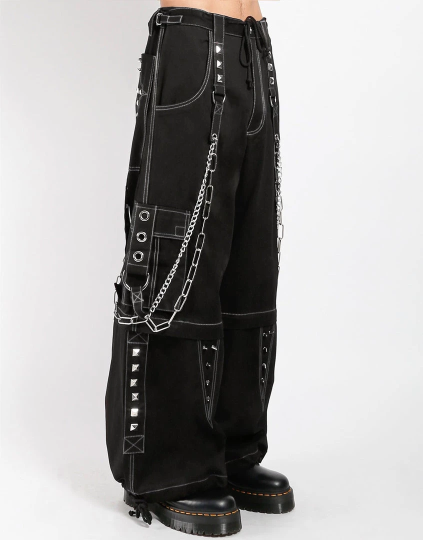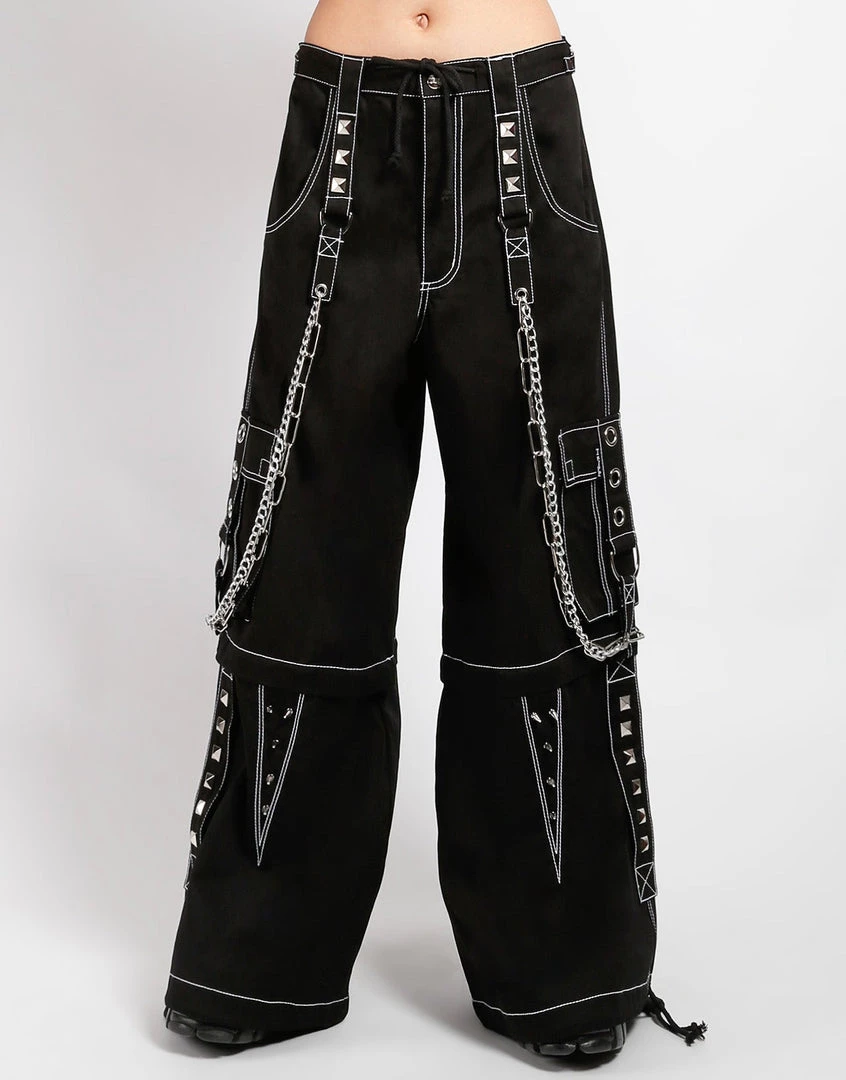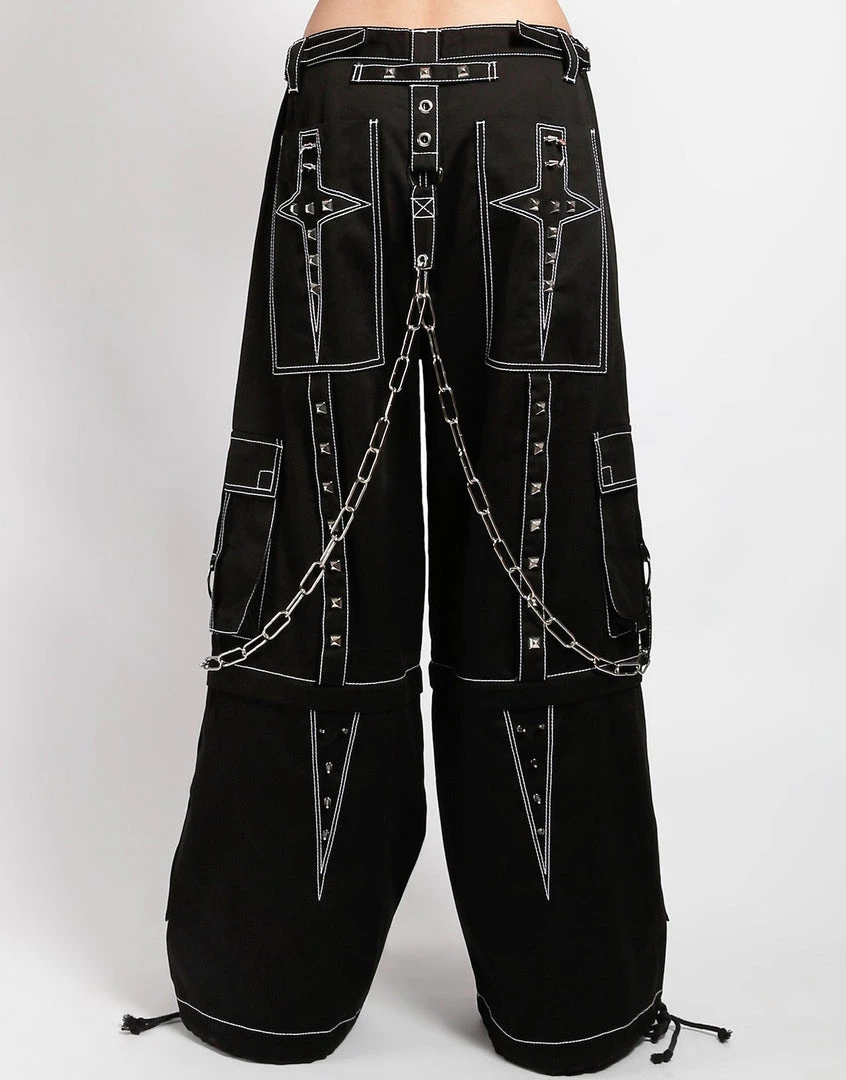 Accept no imitations! From the originator of all things DarkStreet, Black pants with white stitch that zip off into shorts and feature safety pins, removable chains, adjustable ankles, D-rings, and cargo pockets.